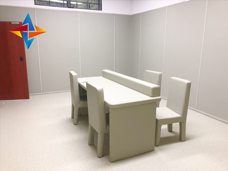 星美建材生產(chǎn)的防撞阻燃吸音材料專業(yè)為派出所審訊室、公安局辦案區(qū)、紀(jì)檢委談話室、詢問室、檢察院訊問室、看守所關(guān)押室、交警大隊(duì)訊問室、特審室、信息采集室、紀(jì)委審查室、禁毒支隊(duì)、拘留所等執(zhí)法部門量身打造集防撞、阻燃、吸音為一體的防自殘、防磕碰的保護(hù)性墻面,能很好保護(hù)嫌疑人出現(xiàn)自殘、撞墻自殺等行為。